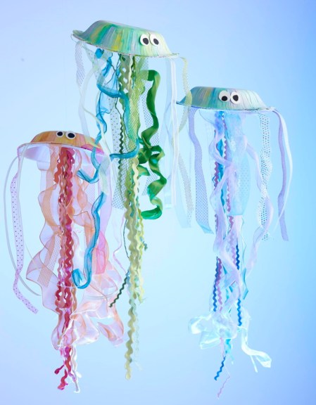 Adorn your party room with these whimsical jellyfish—beautifully displayed here at I Scrap, U Scrap—will make you and your guests will feel as though you are swimming in an underwater wonderland. Color an upside down paper bowl and glue matching ribbons to their bellies; then add googly eyes make them come alive.