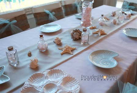 Every little mermaid should be adorned with shells and pearls and no one understands this more than Dominica of Proudest Monkey Photography. She displays a truly whimsical way of capturing a gorgeous party setting with her table top decorations and handmade chair flair shown here via Chickabug.