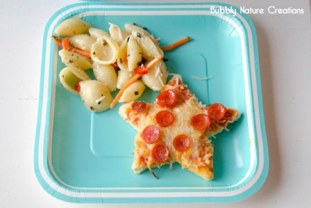 Your guests will be lickin’ their lip when they see this revamped lunchtime classic—starfish pizza and seashell salad. Easy directions courtesy of BubblyNatureCreations.