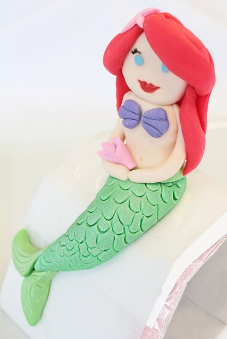 The cake-toppers at Patricia Minish Designs (via Etsy), add some bling and pizzaz to your cake giving your little mermaid a cake dripping in fantasy.