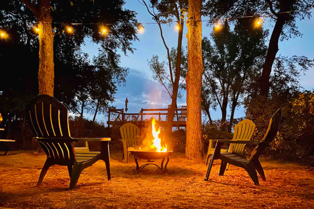 Ahoy, me hearties! Pirate-loving littles will definitely want to spend a night aboard the “Passing Wind,” outside of Wisconsin Dells. The unbelievable Pirate Ship Adventure Cabin has room for six and is guaranteed to make memories. A slide, swing set, and tons of pirate décor add to the fun. Parents should know that the ship’s two bedrooms are separated by a short 15-foot walk across an outdoor lower deck, and bathrooms are a short walk away.