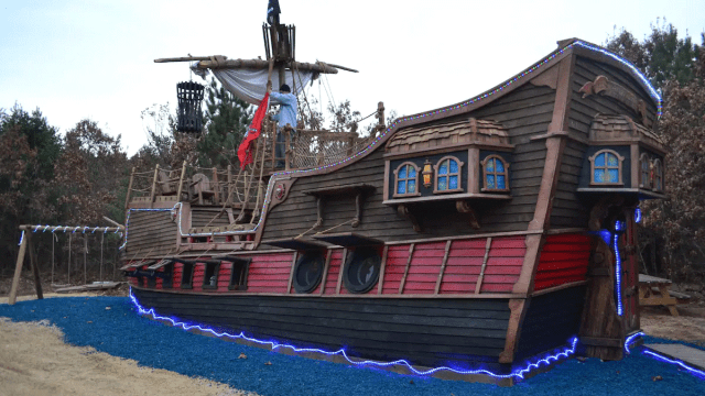 Ahoy, me hearties! Pirate-loving littles will definitely want to spend a night aboard the “Passing Wind,” outside of Wisconsin Dells. The unbelievable Pirate Ship Adventure Cabin has room for six and is guaranteed to make memories. A slide, swing set, and tons of pirate décor add to the fun. Parents should know that the ship’s two bedrooms are separated by a short 15-foot walk across an outdoor lower deck, and bathrooms are a short walk away.