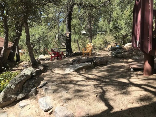 This beautiful cozy cabin is nestled on a hillside just 1 mile from the town of Crown King. Settled in the Sunny South neighborhood this house has beautiful views from every location on the wrap-around deck. Cook up some dinner on the BBQ and enjoy the picturesque property.