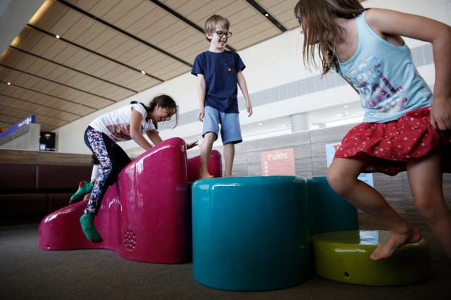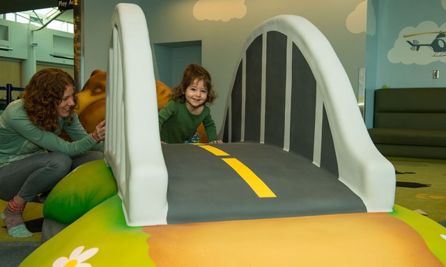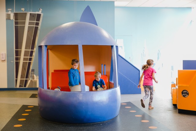 Whether you take off from the nation’s capital or land there, your little aviator will dig on the NASA-designed Kids FunWay in the B Concourse when you’ve got time to spare. It’s where they can play with interactive games, climb around on the soft foam pieces and learn about aviation, from the fun facts posted around the playspace. Add in parent seating and charging stations along the wall and you’ve got a spot where the whole fam can take a load off while traveling.