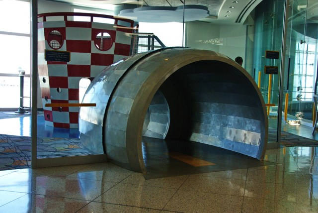 With seven play areas scattered throughout the airport, there's plenty for tiny travelers to do at DTW. Kids will also love riding the Red express tram train, which is operated by Delta and goes from one end of the concourse to the other. If you've got time, check out the groovy underground light tunnel connecting Concourses B and C, featuring 9,000 ft. of glass panels illuminated by LED lighting and set to an original musical score (you can check it out on Youtube first. The tunnel has a moving walkway running both directions, so your kids will probably want to go back and forth (and back and forth and back and forth) basically until your flight departs. Don't say we didn't warn you.