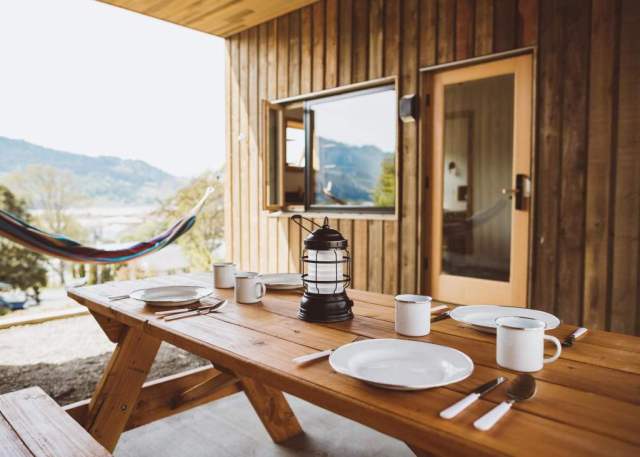 If you've ever wanted to spend your night suspended in the trees, look no further than Vertical Horizons in Southern Oregon. Here you can rent out one of four treehouse cottages and truly immerse yourself in nature. Wake up to the sound of birds and an awesome breakfast provided on site and then spend your days climbing trees, fishing or playing disc golf. Kids are welcome, and the cottages can sleep your whole crew. All of the treehouses come with a half bath—showers and BBQs are located near the main house.