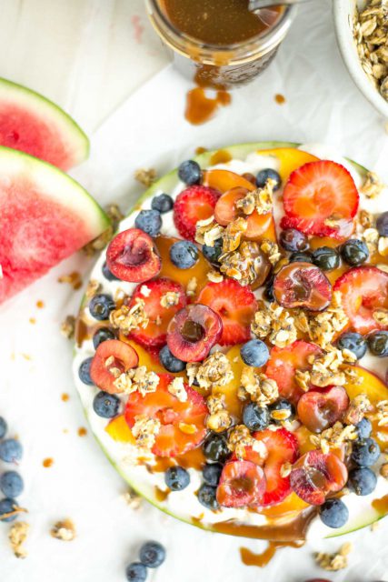 Home National Days Melon Mania: 8 Amazing Watermelon Recipes By susie foresmanJuly 31, 2018 Search more like this nutritionfresh-fruitice-creamwatermelonrecipefruitchicken-cooppizzawellnessdietcuisinefitnesssaucebalance Read next National Days Honoring Everyday Heroes This Halloween National Days Most Americans Steal Their Kids’ Halloween Candy (& More Spooky Season Facts) National Days Is Halloween Scaring Your Kids? Here’s How to Help Them Conquer Their Fear National Days Want to Make Halloween Safe & Sweet? Think like a Kid National Days The Ultimate Gift Guide for Little Scientists Nothing screams summer quite like watermelon, and we’ll take any excuse to add the fruit to our meals all season long. We’ve hunted down these recipes to incorporate watermelon into breakfast, lunch and dinner. Click through the slideshow below for some sweet summery inspiration. photo: Simple Roots Wellness Healthy Fruit Pizza with Watermelon Crust Forget pepperoni pizza—wake up with a slice of delicious (and healthy!) watermelon pizza. This awesome recipe from Simple Roots Wellness uses a cream cheese frosting as the “sauce,” and kids can help top it with all their favorite fruits. Get the recipe by clicking here. photo: Food Network Watermelon Split Craving a sundae? Instead of bananas, make a watermelon split inspired by FoodNetwork.com. Topped with blackberry sauce, it’s sure to be a hit with the whole fam. To grab the recipe, click here. photo: Momma Cuisine Fresh Watermelon Milk Tea Boba Whip up this refreshing drink from Momma Cuisine. The boba (aka black tapioca pearls) makes it a more filling treat, and the blended watermelon mix is the perfect thirst quencher. Click here to get the full recipe. photo: Nutrition à la Natalie Summer Fruit Bruschetta Fancy up your dinner table with this fun appetizer from Nutrition à la Natalie. Instead of tomatoes, the base is (you guessed it) watermelon, making an unexpectedly tasty bite. Find out how it’s made by clicking here. photo: Beyond the Chicken Coop Watermelon Sorbet Cool off by making Beyond the Chicken Coop’s super simple sorbet. It comes together in no time with watermelon, sugar, water and an ice cream machine. Click here to get the full recipe. photo: Paleo Diet and Fitness Beef and Watermelon Kebabs We love Paleo Diet and Fitness’ idea of switching out the traditional peppers or mushrooms for watermelon in these grilled kebabs. A tangy marinade is key here to set off the sweetness of the fruit. To see the recipe, click here. photo: The Balanced Berry Watermelon Cherry Popsicles Popsicles are the perfect way to make use of fresh fruit, and this recipe from The Balanced Berry is a great one. It’s super easy to tailor it to your family’s tastes, too. Find out how the pops are made by clicking here. —Susie Foresman