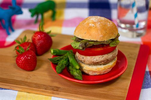 What's on the Menu: Homemade turkey burger on whole grain roll, served with grilled asparagus and fresh strawberries; baked whole wheat pancakes with berry compote; roasted chicken chow mein.
