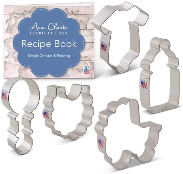 Make cookies in the shape of a onesie, bib, rattle, baby bottle and old-fashioned baby carriage with this set of cookie cutters ($13). It comes with a recipe booklet, or make the mom-to-be's favorite treats.