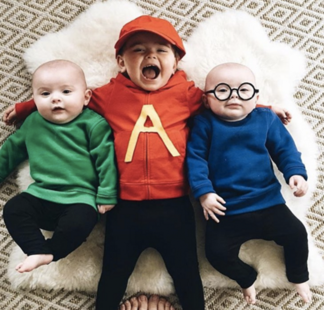 They're the chipmunks—Alvin, Simon, Theodore! This quick DIY, courtesy of our kid-favorite clothing brand Primary, turns your wild bunch into these adorable chipmunks while keeping them warm and cozy on Halloween.
