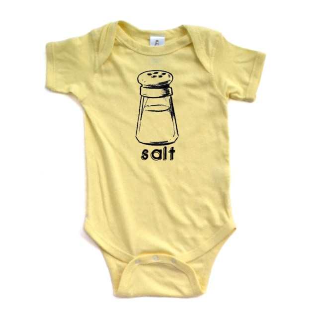 Show the world how much your kids have spiced up your life by dressing them in matching salt and pepper bodysuits. These come in seven colors and a range of baby and toddler sizes.