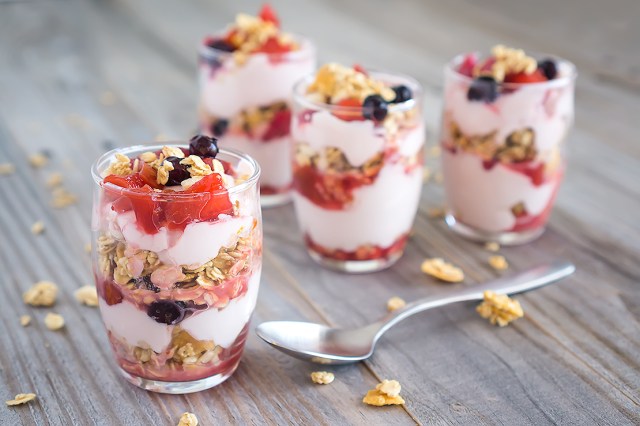 Parfaits are a beautiful alternative to cake, especially at a brunch celebration. And they’re even cuter in small parfait cups. This version from Yay Baby! uses Greek yogurt and fragrant orange zest in the mixture. Dress it up with a sprinkling of shredded coconut, chocolate shavings, nuts, or cinnamon. Expecting guests under age 1? Swap the honey for maple syrup or jam.