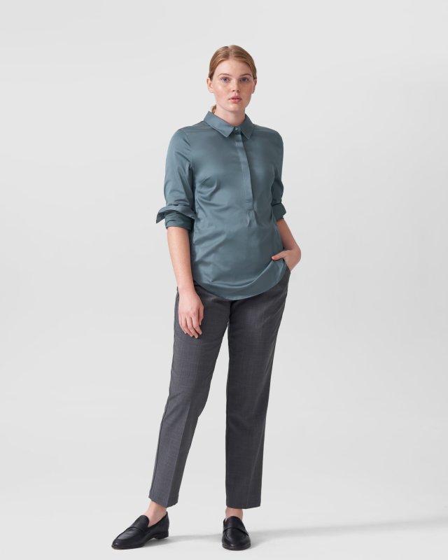 Have you heard about the trailblazer brand Universal Standard? They're doing great things in the world of fashion for all shoppers by removing the anxiety felt by millions of women about clothing sizes. They offer a number of pieces that can be worn with a bump. The Elbe shirt is one of them. This classic button-down has built-in stretch and a button that stops mid-way. The shirt's engineered for maximum movement, which moms-to-be need and love.