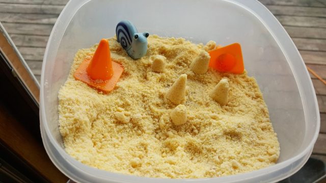 Check out this genius kinetic sand recipe from Surviving a Teacher’s Salary. It’s made with ingredients you probably have in your pantry, and it keeps well in an airtight container for multiple playtimes. Littles will love shaping the sand and letting it run through their fingers. Add your child's small cars, DUPLO blocks or small plastic animals to encourage imaginative play.