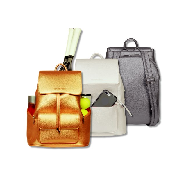 We love the metallics and crisp white vegan pebble-grain leather of these roomy backpacks. They're easy to clean and feature insulated pockets that keep drinks hot or cold, as well as an easy-access front pocket for your essentials. The inside is lined with (hot pink!) waterproof nylon and has three handy pockets. There's a padded compartment for your laptop or tablet, and when you're no longer using the bag for toting baby stuff, it works great for stashing tennis racquets. The backpack also comes in two smaller versions: midi ($119) and mini ($89).