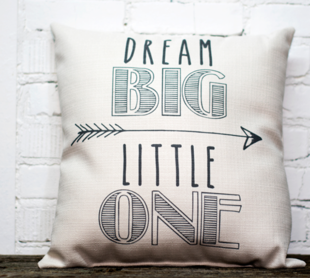 Prop up your baby for a photo on a clever pillow like this one. As with some of the other ideas mentioned, you can use the pillow as a size reference when you take monthly snapshots. And the pillow options are nearly endless, as you can find them in all sorts of shapes, sizes, patterns, colors and sayings.
