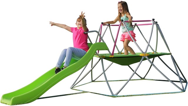 Home Gear Reach for the Sky with These 10 Outdoor Climbing Domes By Kate LowethSeptember 5, 2021 Search more like this hide-and-seekmotor-skillsobstacle-coursespretend-playclimbyardkidjungletentgymplaygroundplayhammockcome Read next Gear The Best Organic Clothes for Babies & Toddlers Gear 45 Pumpkin Carving Designs That’ll Wow the Neighborhood Gear Target’s Best Holiday Deals Start Sooner Than You Think Gear This Larger Than Life Mister Rogers Monument is Exactly What the World Needs Gear Want a Free Donut on Halloween? Here’s How to Get One from Krispy Kreme With many kids spending more time at home and backyards getting more use these days, adding a climbing dome to your backyard swing set setup just might be the best pandemic purchase of the year. Not only do outdoor climbing domes help kids develop core strength and gross motor skills, but they are lots of fun for kids who are into pretend play—not to mention, they make a great playground alternative for those families who aren’t comfortable going to the local playground just yet. Easy to assemble, you can get one of these set up in your yard just in time for the weekend! Zupapa Climbing Dome No matter what size yard you've got, this climber has you covered. It's available from 6 feet diameter to 10 feet diameter and various fun colors. Get yours here, $165 and up. photo: Wayfair Propel Geometric Jungle Gym Dome Climber This climbing dome comes in at 10 feet wide and five feet tall with a max weight of 400 pounds. Parents find the set-up to be relatively easy with two people. Throw a sheet over the top and you'll be all set for the next backyard campout! Get yours here, $250. photo: HearthSong HearthSong Climbing Dome with Slide How cute is this dome that comes with its own slide? Perfect for the toddler to kindergartener set, kids can climb up to the solid wood platform to slide down and start again. Get yours here, $300. photo: Amazon Lifetime Climbing Dome This climbing dome is easy to assemble and sturdy for a weight up to 600 pounds. Multiple kids can climb on it at once and it would be a great option for your next backyard stargazing night. Get yours here, $180 and up. photo: Amazon SLIDEWHIZZER Climbing Tower with Slide We love this 2-for-1 climber as it adds on a slide so that kids can go up and down over and over again. Multiple children can easily engage in social play while developing confidence, stronger muscles and greater agility. An awesome addition to your backyard obstacle course! Get yours here, $300. photo: Amazon TP Toys Explorer 2 Climbing Set Jungle Gym with Platform and Tent Climb up and play on the Explorer 2, the platform and tent climbing set. With its adjustable frame, it can be sized just right for both toddlers and older kids. Kids will love the viewing windows to look out from when they reach the top and roll-up doors to let in allies to their fun new fort.Get yours here, $247. photo: Amazon Funphix Buildable Climber If you want the ability to assemble your climbing structure the way you want it, this one is for you. The Funphix system is able to be assembled and disassembled over and over again so you can change it up every day if you'd like. Get yours here, $340. photo: Amazon Jugader Geometric Dome Climber with Swing and Canopy We love this option as it comes with a detachable swing and canopy. You can attach the canopy over the top for some shade, in the middle as a hammock or on the ground for some additional cushioning. A great addition for kids who like to play hide and seek! Get yours here, $280. photo: Amazon Eezy Peezy Monkey Bars Climbing Tower For a little bit of a different shape, this climbing dome adds on a tower to make its max height 47 inches. Lightweight and easy to assemble, you can move this tower around the yard as you wish. Buy one here, $157. photo: Amazon Easy Outdoor Space Dome Climber If you are looking for a super-sturdy option, this is a great choice. With a maximum weight capacity of 1000 pounds, you don't have to worry about having too many kids on there at once. Get yours here, $250. —Kate Loweth RELATED STORIES 12 Most Popular Playhouses Parents Are Buying Right Now Get Jumping: Trampolines You Need in Your Backyard Now 55 Free or Cheap Ideas for Inventive Backyard Play 6 Epic Summer Backyard Hacks the Kids Will Love