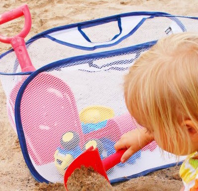 Heading surfside means toting the gear your kids will need for sand castle construction, burying siblings, making beach art and other fun games, but when it’s time to pack up and ship out, the bottom of your bag looks like the beach came along for the ride. Not anymore, thanks to The Idea Room's sweet hack. Putting all of the toys in a mesh laundry basket gives dried sand an escape route, and there are major bonus points for being big enough to pack your kiddo’s entire supply of beach toys.