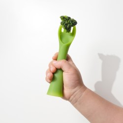 These chunky baby spoons and forks are ideal for little grips. The shape helps them hang onto their utensils and the kiddo-friendly colors (there are lots of them!) help to keep them engaged.