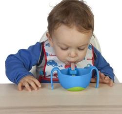 The weighted straw idea is brilliant, honestly. It lets your little one drink from any angle or position and keeps spills and leaks to a minimum. There are 7 colors available.