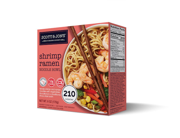From Scott & Jon and their frozen shrimp and grain bowls, comes four new flavors—Shrimp Alfredo Pasta, Shrimp Ramen Noodle, Spicy Ramen Noodle, and Shrimp Scampi Pasta. All of their bowls cook in under four minutes and are under 300 calories. Each bowl is also packed with protein.