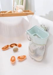 Toddlers will love “fishing” for the three cute bobbing magnetic toys that are included in this fun bath toy,