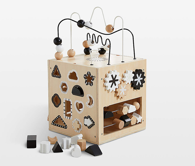 12 different activities will help baby develop motor skills and recognize colors. It can be placed flat on the ground or angled in two different upright positions. Plus, the gorgeous design will look good in your home.