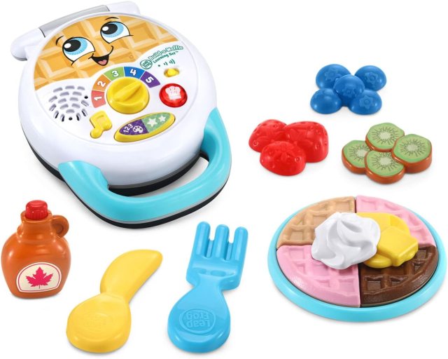 There are three music modes on this adorable electric toy guitar, eight musical chords, 20 sing-along tunes, and nine puppy songs, all of which will keep your toddler moving and grooving.