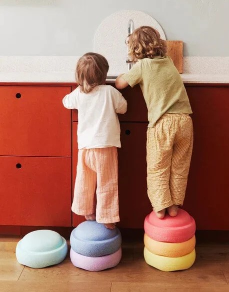 Stapelstein Stepping Stones are the original play 'stones'. They're soft-touch, stackable, sturdy, and can be used in a ton of imaginary ways to get your little one's creativity flowing (plus, they're really convenient to use as seats, stools, or steps!). The Winter Rainbow Special Set comes with a free Board super cool to help your tot find their balance.