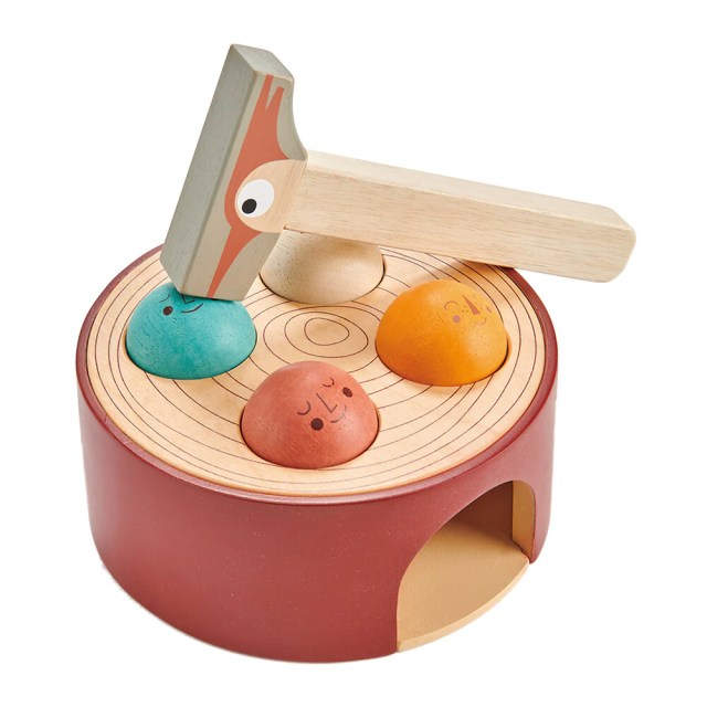 The mouth on this Ankylosaur-shaped counting toy opens when little ones place the 12 spikes into its back. It’s perfect for sensory development and a good indoor or outdoor toy.