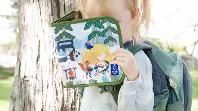 Kids can stamp library cards, file books away when they’re done “reading,” and play librarian with friends. When it’s time to check out, tuck everything away in the little suitcase.
