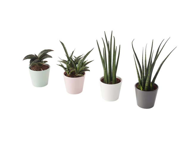A set of live snake plants is perfect for anyone with a green thumb. Each one comes in its own pastel-hued pot.Â