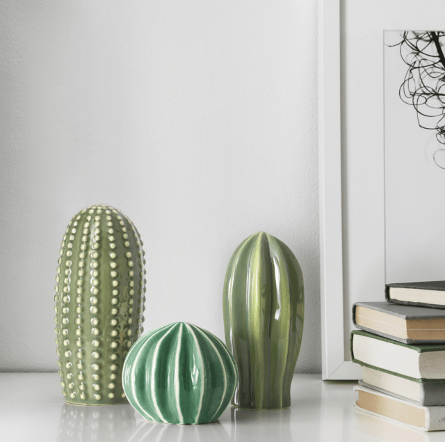 A decorative cactus set for the bookshelf, no watering required.