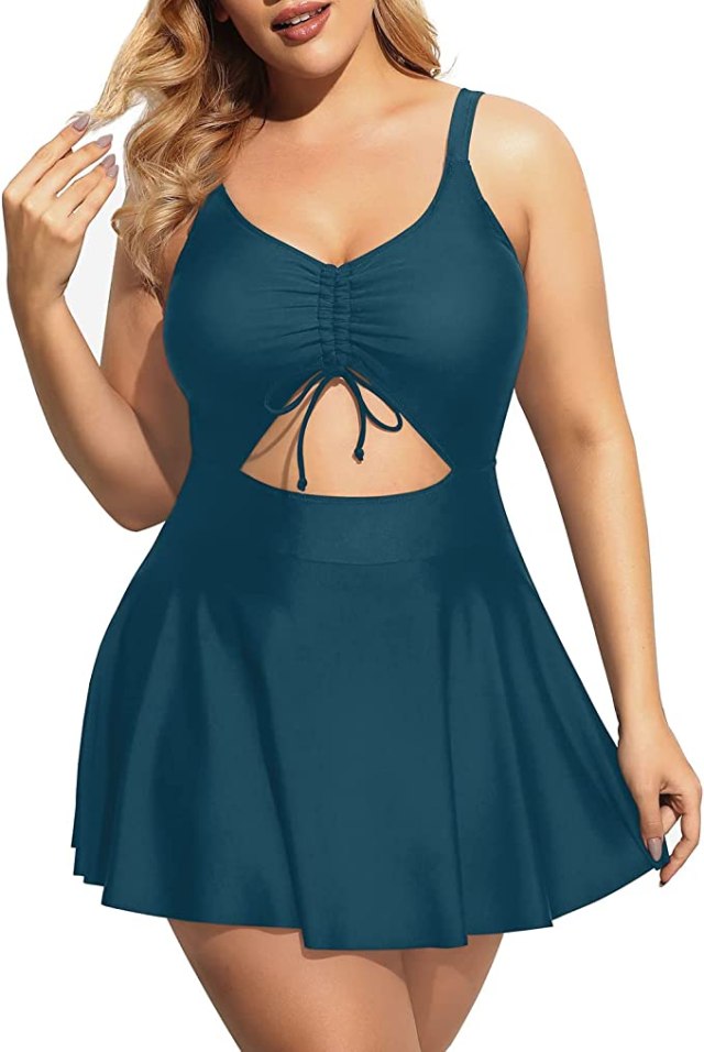 Amazon Review: I previously purchased swimsuits at Torrid but was not liking the fit of each swimsuit. I took a chance on this swimsuit and will purchase another in a different color soon. The coverage is amazing especially for a water park where if you want to feel protected when going down water slides. It is very flattering and the material is perfect with the style. I went based off of my size in Target brand swimsuits and it fit great! I was tired of wearing black swimsuits so the color is an added bonus. —Marco Mendoza