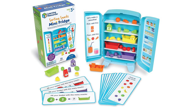 I’d wager a guess that you’ll love playing with this little vending machine just as much as your toddler! Just press the buttons and watch your snack pop out the bottom. Fun twist: fill it with actual packaged snacks for kiddos to choose from when they’re peckish.