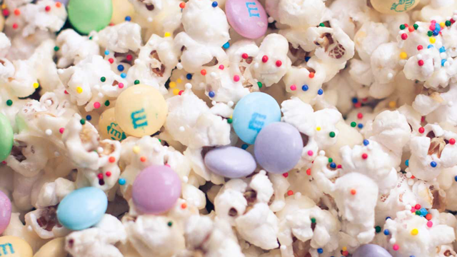 Kick your popcorn up a notch, birthday style, with this simple recipe from Peanut Blossom. It uses melted chocolate with cake batter mixed in, sprinkles, and M&M's. The best part? You can customize all the decorations to match your party theme!