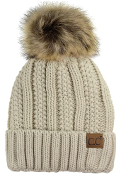 C.C Thick Cable Knit Faux Fur Pom Fleece Lined Beanie