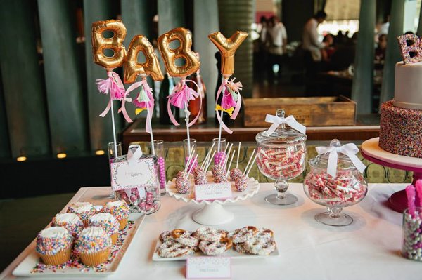 Go for glamorous gold and silver accents with a star-themed party perfect for couples waiting to find out if they're having a boy or a girl. Star garlands, metallic star balloons, gold cupcake wrappers, star cut-out cookies and star-stamped macarons make a studded affair. While art stating "twinkle twinkle little star, do you know how loved you are," is downright sweet.