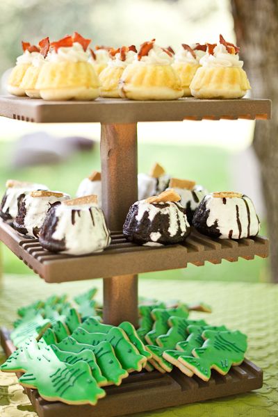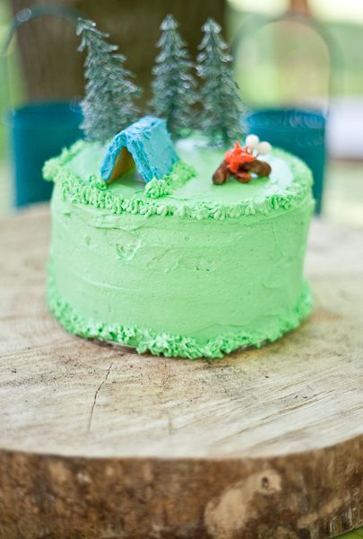 Even Greyson’s cake featured an outdoors/camping theme. If you want to make your own, mix some green food coloring with vanilla frosting and voila, you’ve got yourself a green frosting base. You can create the makeshift tent with graham crackers, the logs with pretzels, and you can buy the trees at a crafting store.