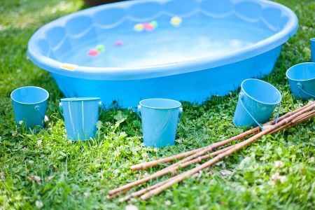 For those DIY parents, this “fishing pond” is a kiddy swimming pool. The fish were found at Target and then all you have to do is add a magnet (the fishing pole was fastened with an opposite magnet so they would connect!).