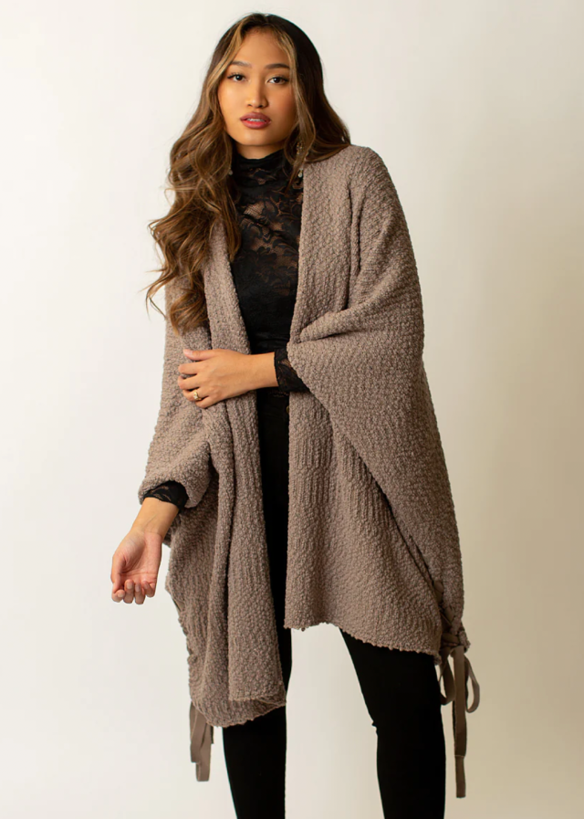 It’s a literal duvet that she can wear around the house, belted or loose and with all her must-haves in the giant pockets.