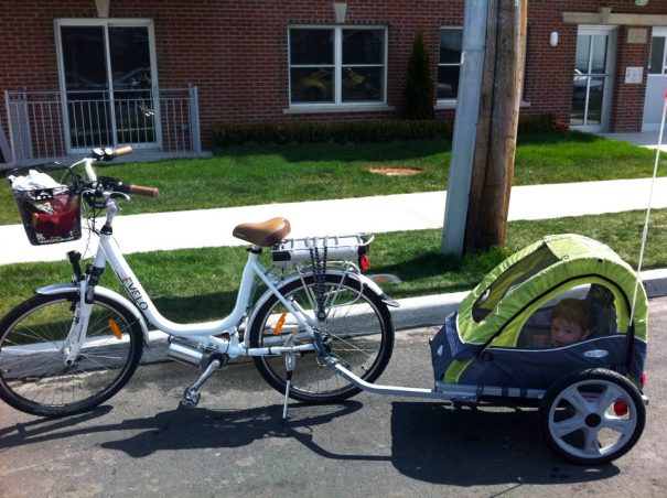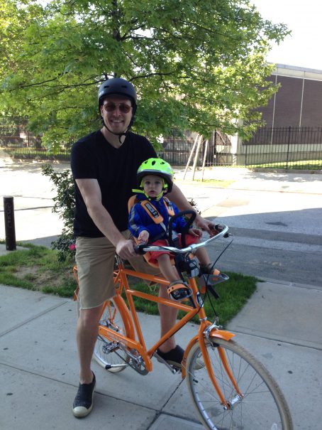 Serenne is following closely behind her father’s wheels. Her first bike ride was in the back of a bike trailer as an infant, safely strapped into a baby car seat. The contraption was so cozy, it became her prefered mode of transport!
