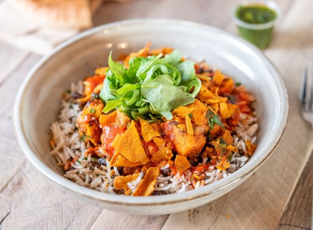 This Asian-inspired restaurant is adorned with—you got it—sunflowers! Food-wise, there’s something for everyone here. Mom can slurp up some spicy noodles, dad can dig into a vegi-bacon potato pie, and the kids can pull together a tapas menu from appetizers like fried “chicken” on a stick, spring rolls, sushi, and more. Note: you will find a few items that include dairy here. This restaurant is currently offering carry-out and delivery due to COVID.