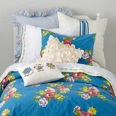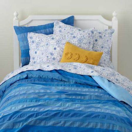 Home Kids Room Decor 14 Ways to Decorate Your Girls’ Room in Blue By katie kavullaNovember 30, 2012 Search more like this eco-friendlybluerugbeddingceilingpillowstoragebutterflybedroomlettersayscalloppinkpull Read next Kids Room Decor The Best Organic Clothes for Babies & Toddlers Kids Room Decor 45 Pumpkin Carving Designs That’ll Wow the Neighborhood Kids Room Decor Target’s Best Holiday Deals Start Sooner Than You Think Kids Room Decor This Larger Than Life Mister Rogers Monument is Exactly What the World Needs Kids Room Decor Want a Free Donut on Halloween? Here’s How to Get One from Krispy Kreme Pink, shmink. The girls are putting their mary jane-clad foot down – they want to decorate their rooms in the color blue and there isn’t a boy who can stop them. We’ve noticed lately that every single color in the rainbow is crossing the gender line – boys have been rockin’ pink and purple shirts for the past couple of years now and a little nautical-esque navy has seamlessly crept its way into the wardrobe of girls. When it comes to room décor, it’s harder to find patterns and accessories that are true blue for the girlies (Anyone else have Madonna stuck in their head right now?). After scouring some of the hottest online retailers for girl-worthy room items, we’ve found these 14 options that will likely have even the girliest of girls craving a little blue. Just Loungin’ Around Pulling together multiple blue fabrics into a piece that will easily carry her all the way through her surely angsty teen years, the Kantha Quilt Indigo Beanbag ($199) is a splurge piece that will set the tone in her room. Having a variety of funky fabrics will make it fit in effortlessly with the other items she already has in her room. Plus, she’ll think that it’s cool that they have sourced the fabric from India and you’ll think it’s cool that the insert is eco-friendly. Every girl needs a place to call her own and especially if she shares a room with other siblings, a hideaway is a must. The Home Sweet Home Play Canopy ($139) will hit two birds with one soccer ball – it gives her a spot to read books and let her imagination run wild and it is perfectly blue. Accessorize, Accessorize, Accessorize! It doesn’t take an interior designer to know that what truly makes a room are the details. And besides making a big impact on a room, accessories are also often the least expensive way to do some decorating… or redecorating, if you’re making the transition over to blue décor. No matter how old she is, your girl will find a use for the Suzani Desk Accessories ($9.00 — $22.50 each). If she’s like the little girls we know, she probably is obsessed with toys that have little tiny pieces and these blue boxes and containers will help keep them organized. Add a little monogram love to her room with an ABC Throw Pillow ($19). Not every letter comes in blue, but if you need a letter B, C, F, I, J, L, M, Q, S, T, W, X or Z, you’re in luck! There’s nothing prettier than a brilliant blue butterfly and these 3D Wall Butterflies ($38 for a set of 20) will add a little bit of life to her room in an instant. They stick to the wall with wall-safe adhesive, but be sure to put them in a place where she won’t be tempted to pull them down to see how well they fly! Ditch the boring old light fixture she has hanging from her ceiling and replace it with this blue beauty – an Aqua Gumdrop Pendant ($70-120, but priced specially right now at $30). We love the fun tangerine polka-dot lining on the inside of the shade and that the cord that attaches to the ceiling is red, but the shape is still a classic, so it will last in her room for years to come! A Place for Everything… … and everything in its place. We love that saying. But with kids, there’s another saying that seems to follow… More easily said than done. Make things easier on everyone by setting up her room with storage solutions that will make picking up toys, books and other odds and ends a breeze. Jenny Lind-style furniture adds a traditional look to any girl’s bedroom, but in this Jenny Lind Bookcase in Azure ($299), it is suddenly fun, funky and fresh. To keep her art supplies neat and tidy – and in blue – check out the I Could’ve Been a Container ($21.95). Fill each bin with markers, crayons, chalk, scissor, paintbrushes and more for easy access to keep her creative juices flowing. Maybe she’ll have an inspired moment and channel Picasso’s Blue Period! Every parent knows that having some bins in their kids’ room helps keep the clutter down. These Printed Canvas Storage Bins ($28-48 each) come in a fun blue flowered pattern and a few of these in her room will make it easy for her to get extra toys, coloring books and stuffed animals off of the floor. They come in two sizes, as well as a hamper size for keeping dirty clothes at bay. Dreaming of Blue One of the best parts of picking out room décor is the bedding! This set is beautifully blue – the Twelve Bar Blues Bedding ($14 and up) is sweet as can be. The stripes on the duvet and shams are actually seersucker and when paired with the floral sheets, it becomes perfectly clear that blue for girls is here to stay. Or, take things one step further on the girly scale with the Petit Chateau Bedding ($16 and up), which is perfectly blue and has a vintage-feel that is completely on-trend right now. Pair it with some striped sheets to add an even bigger punch of blue. Why hasn’t anyone thought to do this sooner? Slip this Pillowcase Friend ($29) over your daughter’s regular pillow and just like that, it’s transformed into a pretty blue butterfly that adds some spunk to her blue room and is cozy to lay her head down on after a long day of hunting for real butterflies! A Little Blue Beneath Her Toes Not every bedroom needs a rug, but adding one is certainly a good way to punch up the blueness! Big bold stripes on the ground, like in the Big Band Rug ($99 and up) 
