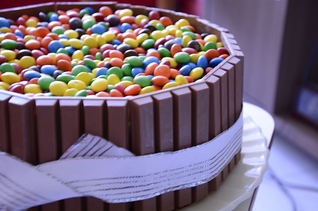 Sometimes basic is best when it comes to cake decorating! It doesn’t get much easier than this idea from Lyndsay Sung via You Are My Fave. Just buy a bunch of chocolates or gummies and pop them on the frosted cake. Click here to see two more simple ideas that look just as delicious.