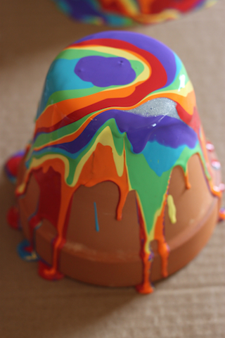 These incredible rainbow pour pots are pretty easy when it comes to cleanup, especially since there aren’t any brushes involved. Just be sure to totally cover the space before handing over the squeeze bottles. Make your way to Messy Little Monster for the tutorial.