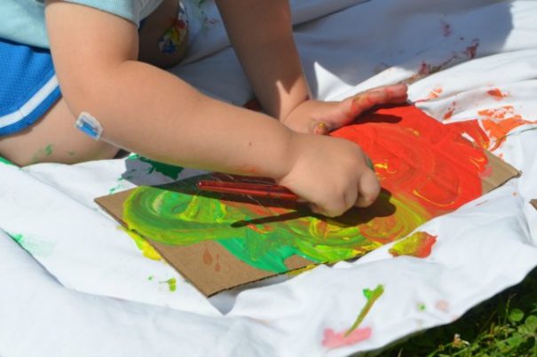 When you want to get creative with your kids but don’t want the mess to take over, outside art is key. The messy stuff can stay outside (like all that baby-safe paint), and your kids (probably) won’t mind when you use the hose to spray them down when they’re done. From painting with water to using salad spinners to contain the mess, check out these outdoor art ideas that are big on creativity, but easy on cleanup.