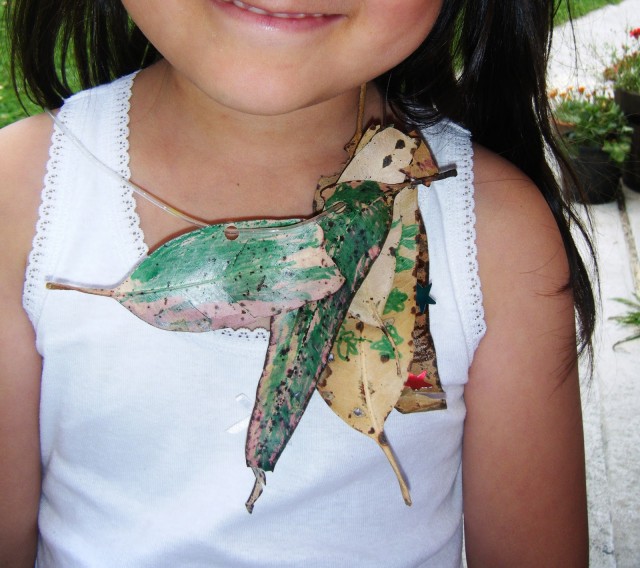 It doesn’t get much simpler than this cute craft idea from Let the Children Play. Just gather a few leaves and let the kiddos decorate them with markers or paint, then string them together to make a swanky necklace.