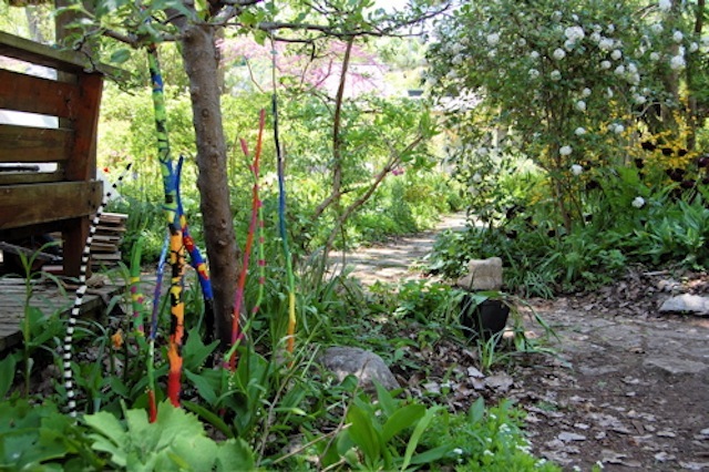 If you’re looking for an easy-peasy, earth-pleasing garden decoration, try this idea from Sweet Thing Designs. The kids will love finding sticks and then jazzing them up!