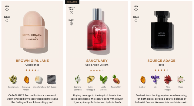Clean at Scentbird Perfumes and Colognes are formulated without ingredients like: parabens, sulfates SLS and SLES, phthalates, mineral oils, formaldehydes, formaldehyde-releasing agents, retinyl palmitate, oxybenzone, coal tar, hydroquinone, triclosan, and triclocarban. Not only that, but there's so many yummy scents to choose from (Mother's Day, anyone?)